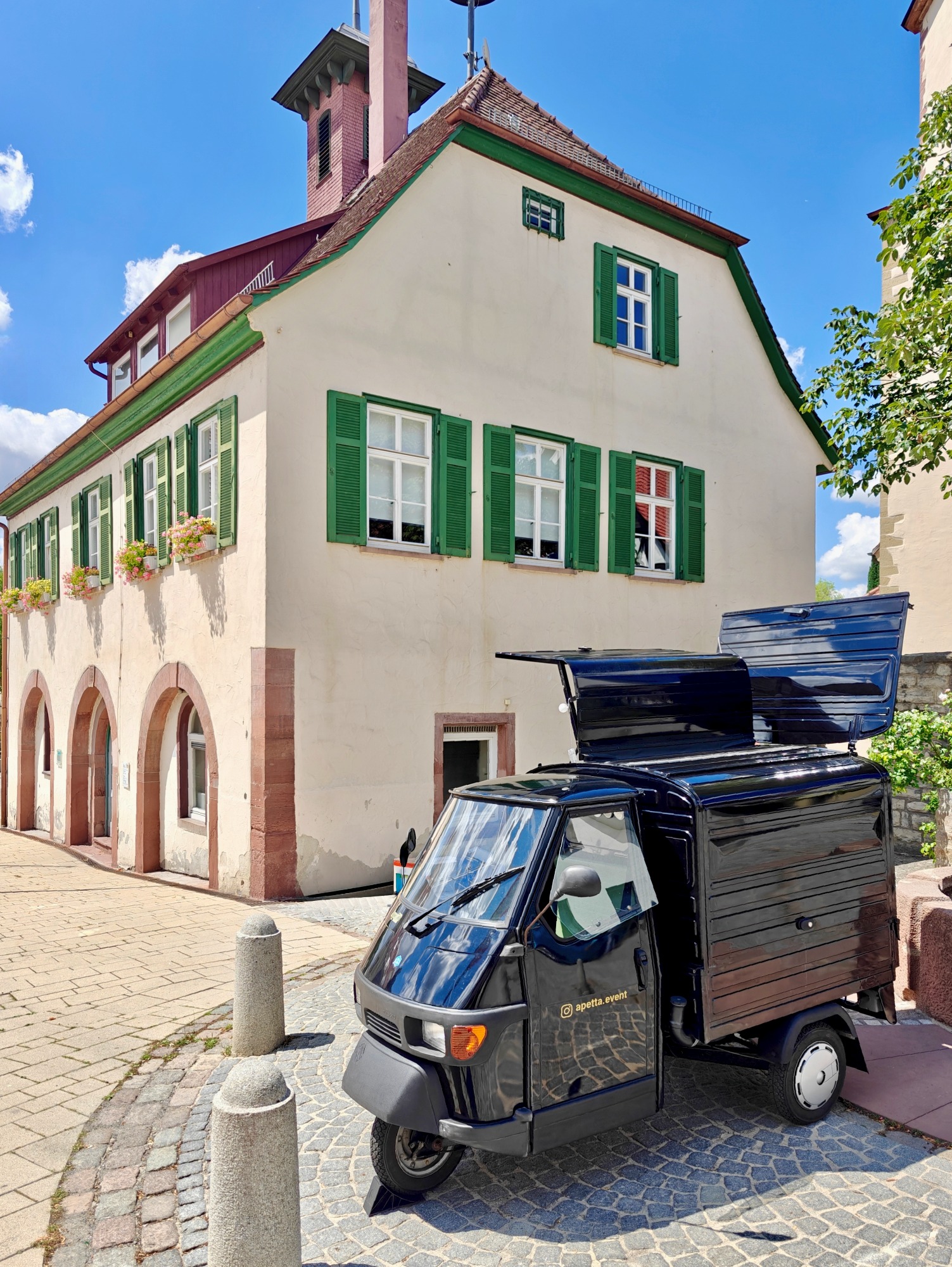 Unsere kleine schwarze Ape 50 ist nicht nur ein Fahrzeug. Sie ist ein echter Hingucker und zieht alle Blicke auf sich!