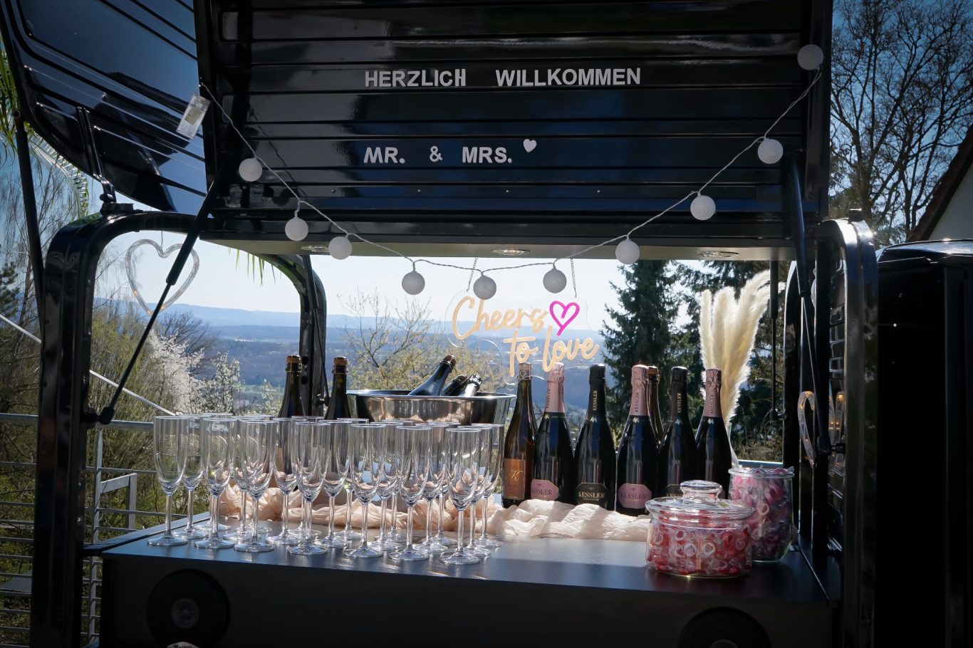Mache deine Sektempfänge unvergesslich mit unserer eingebauten Musikanlage. Stimmung garantiert!
